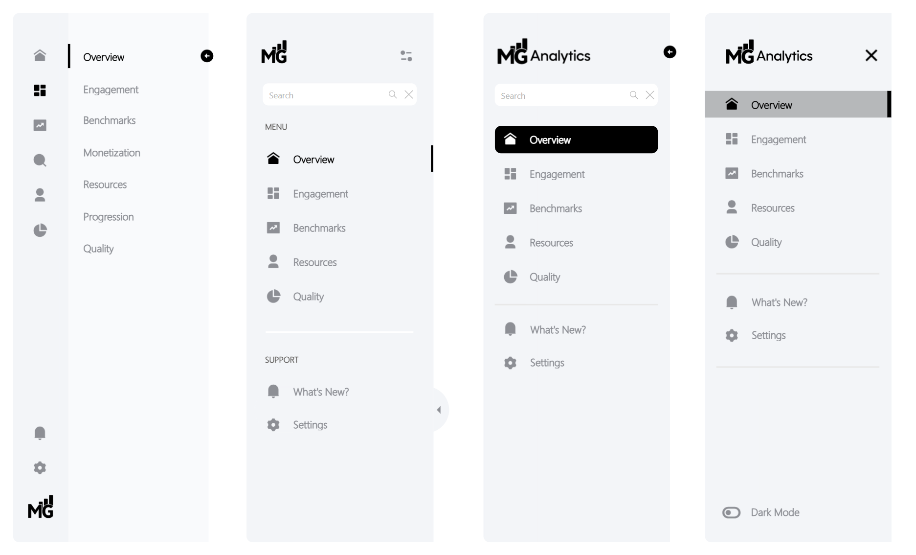 And as a sweetener? We’ve included a light/dark mode toggle example that dynamically switches your menu theme with a single click; perfect for showing off your design chops or giving users control over their viewing experience.